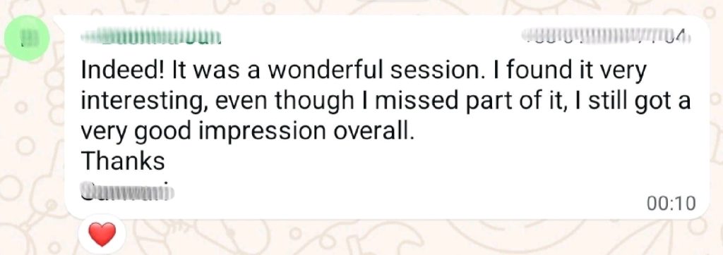 “Indeed! It was a wonderful session. I found it very interesting, even though I missed part of it, I still got a very good impression overall. Thanks”