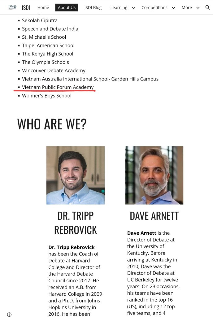 We are pleased to announce that Vietnam Public Forum Academy has been officially recognized by the International Speech & Debate Initiative (ISDI), a joint effort of the University of Kentucky – Tournament of Champions (TOC) and the Harvard Debate Council (HDC): https://www.isdiworld.org/about-us